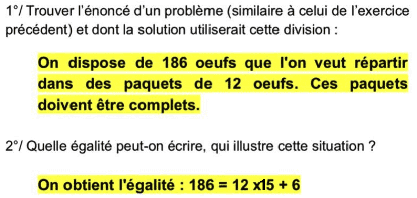 Copier ensuite le début de la partie "I-Division Euclidienne" : Définition et exemple.